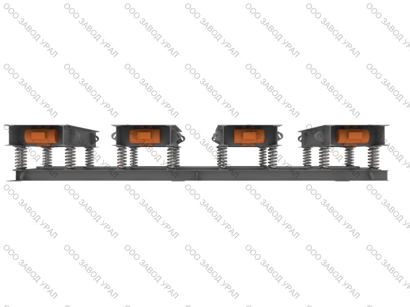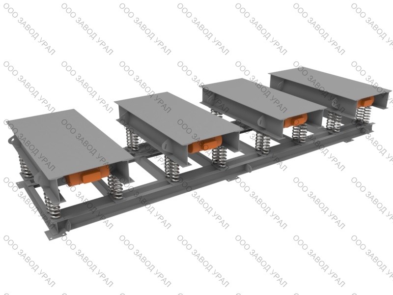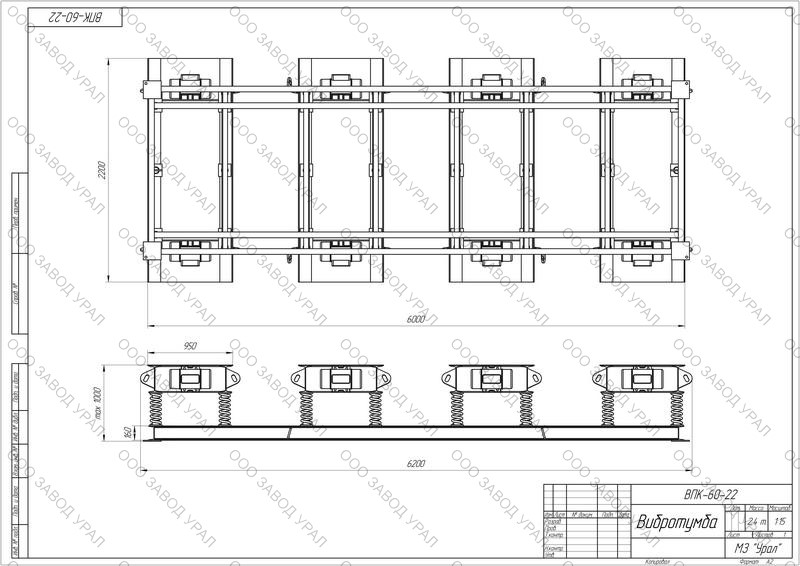 Виброплощадка «ВПК-6» состоит из 4 вибротумбы, смонтированных на одном основании. (рама цельная) Вибротумба состоит из подвижной рабочей части, закрепленной на подпружиненных опорах. На подвижной рабочей части вибротумбы установлены 2 вибратора «ВИ-107Н», создающие вертикально направленные колебания, передаваемые форме и вибрируемой массе, горизонтально на подвижной рабочей части.
