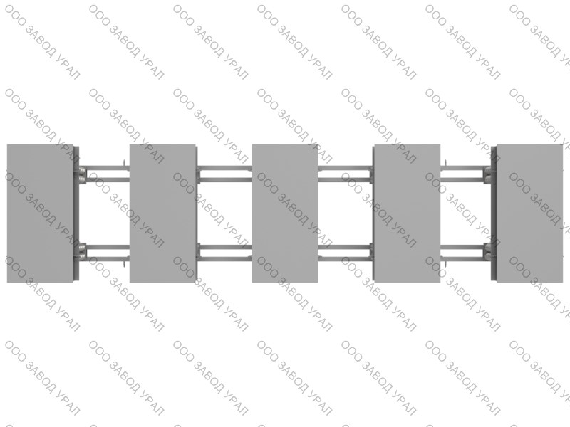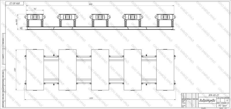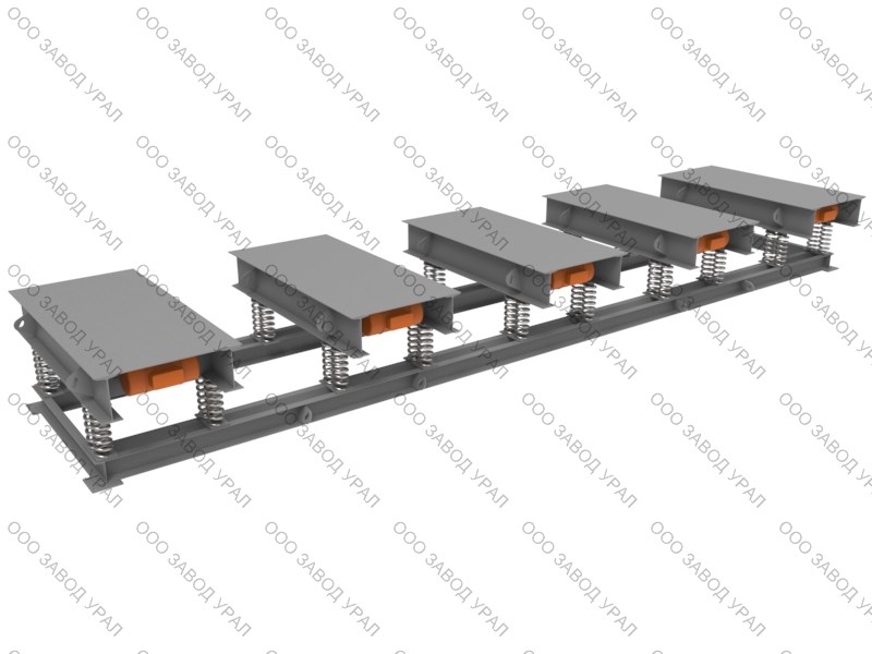 Виброплощадка «ВПК-8» состоит из 5 вибротумбы, смонтированных на одном основании. (рама цельная) Вибротумба состоит из подвижной рабочей части, закрепленной на подпружиненных опорах. На подвижной рабочей части вибротумбы установлены 2 вибратора «ВИ-107Н», создающие вертикально направленные колебания, передаваемые форме и вибрируемой массе, горизонтально на подвижной рабочей части.